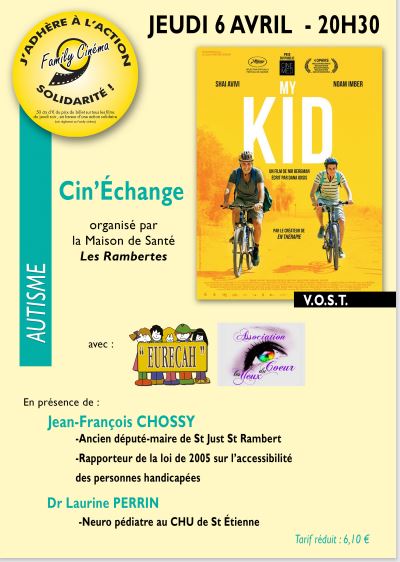 A l’occasion de la journée internationale de l’autisme du 6 avril prochain la maison des associations de St Just St Rambert organise la diffusion du film My Kid au family cinéma. Cette diffusion sera suivie d’une soirée débat avec la participation de M. Chossy: ancien député maire de St Just St Rambert et rapporteur deLire la suite « Soirée cinéma »