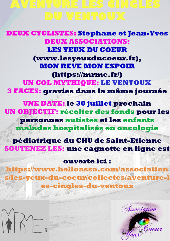 Au mois d’avril Jean-Yves me parle du défi que s’est lancé Yohan de réaliser, le premier week-end de juin l’ascension du mythique mont Ventoux par ses trois côtés, et ce la même journée, et par la même occasion de rentrer dans le cercle très fermé des cinglés du ventoux.