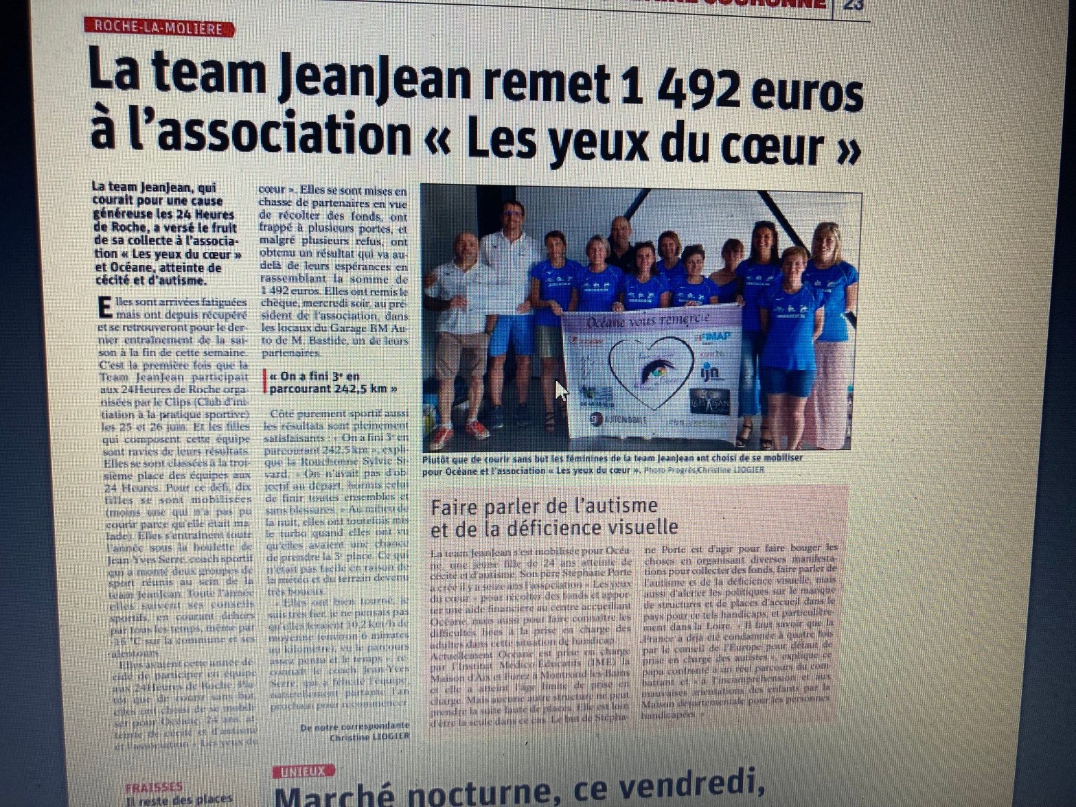Le 25 juin dernier une équipe de valeureuses coureuses du team Jeanjean s’étaient données rendez-vous au stade Louis Berger de Roche la molière pour participer en équipe aux 24h. Auparavant elles avaient démarché les artisans commerçants de Roche la Molière, St Genest Lerpt, et plusieurs autres villes de la couronne de St Etienne. Au final elles ont fait une super performance avec une troisième place et près de 250km parcourus!!