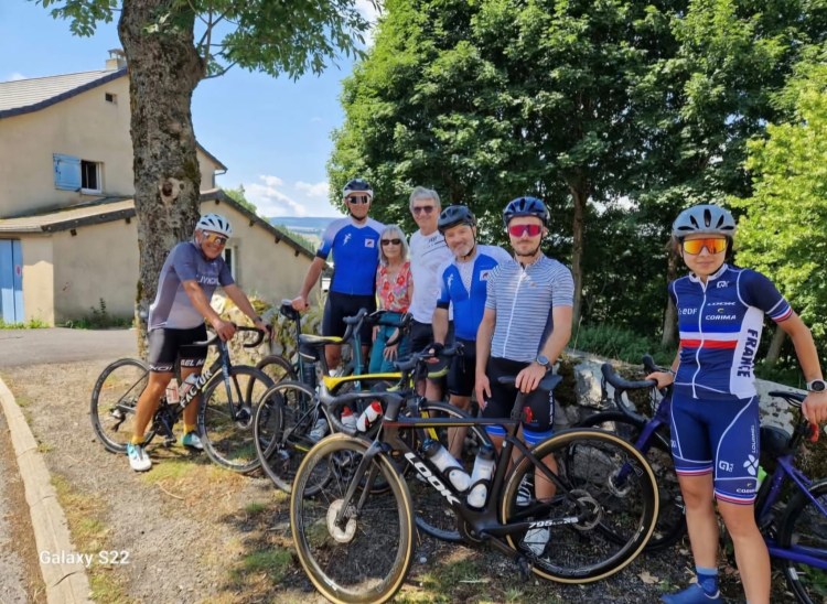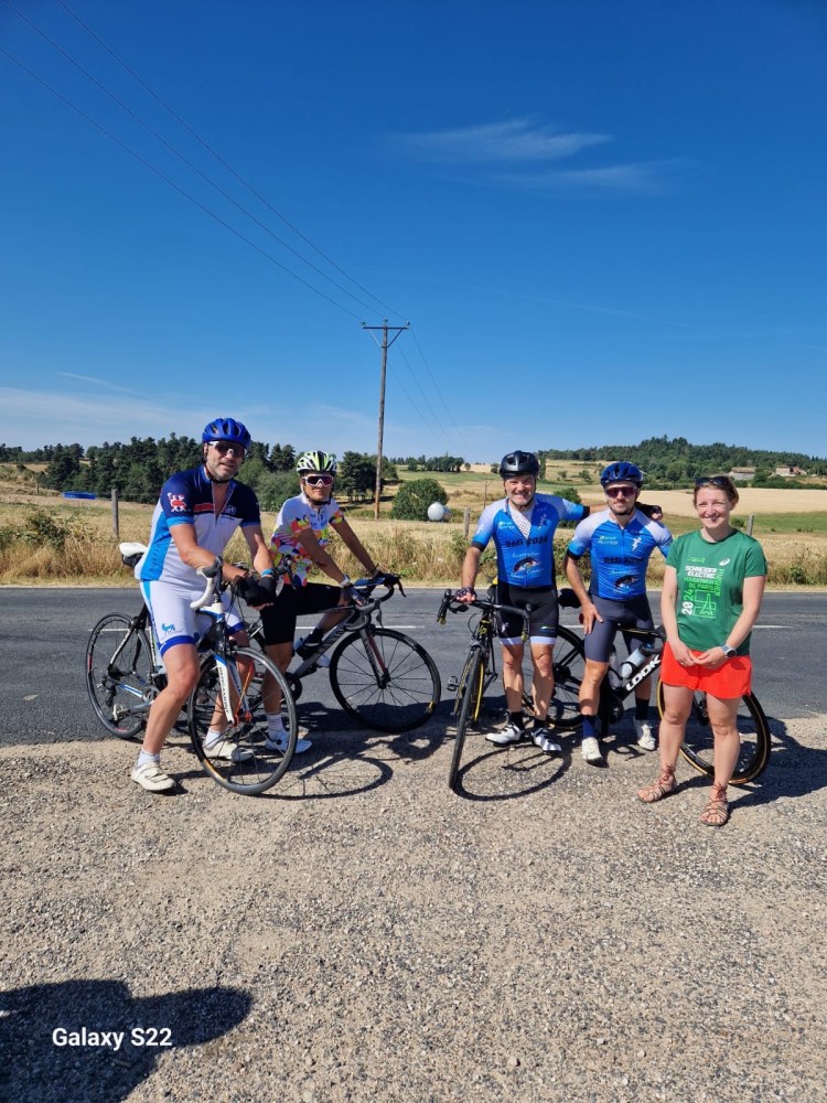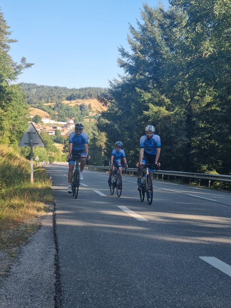 C’est sous le signe de l’amitié que s’est déroulée cette deuxième partie de notre périple 2025. Pour rappel la première partie avait lieu les 14-15 et 16 juin sur les routes de notre beau département de la Loire au plus prés de ses frontières. Samedi 12 juillet 8h14 pétante, nous enfourchons nos bicyclettes pour la première étape de ce tour de la Haute Loire. Au menu 138km, qui se transformeront en 140 et 2060m de dénivelés positifs. Et quand je vous dis que ce défi se déroulera sous le signe de l’amitié ça commence bien avec la venue de Mathilde, Gabin et mon poto de longue date, mon Dag avec qui nous avons écumé les chemins d’Ardèche et de Navarre. Quelle surprise de le voir sur un vélo de route (que je connais bien) pour venir faire un bout de route avec nous. Comme à son habitude il est accompagné (excuse moi ma Flo) de deux belles filles: Farida et une autre amie de longue date: Carole Souchon.