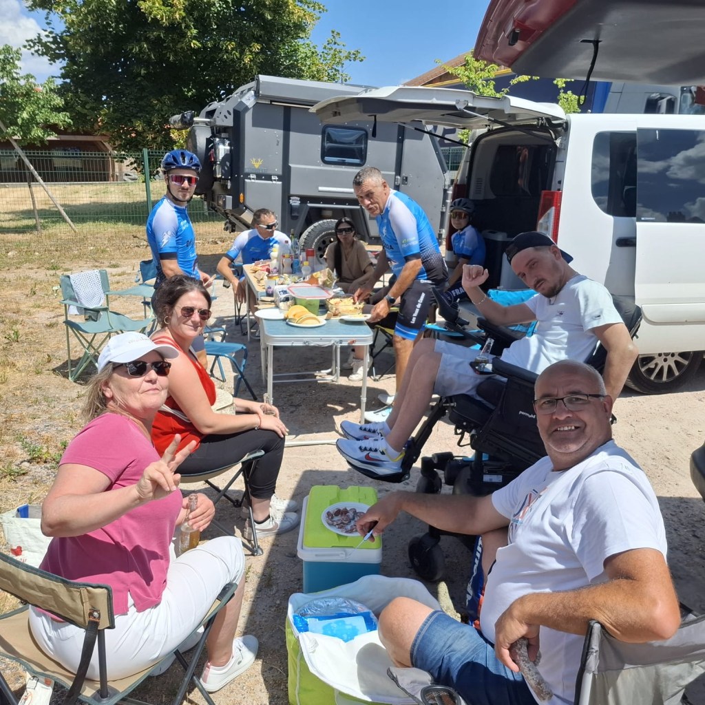 Et là, quel comité d’accueil: Charlélie Violaine Celine et Fred sont venus nous encourager. Quel plaisir de les voir et de partager une bonne binouze et un bon repas avec eux sous un soleil de plomb