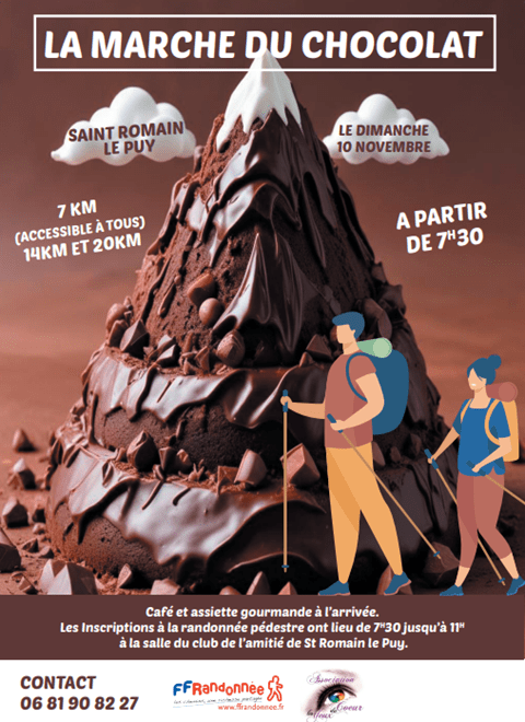 10 novembre; Marche du chocolat à St Romain le Puy : 2000 marcheurs de nombreux satisfaits et des déçus: un gros merci à la boulangerie du Pic pour les chocolats.