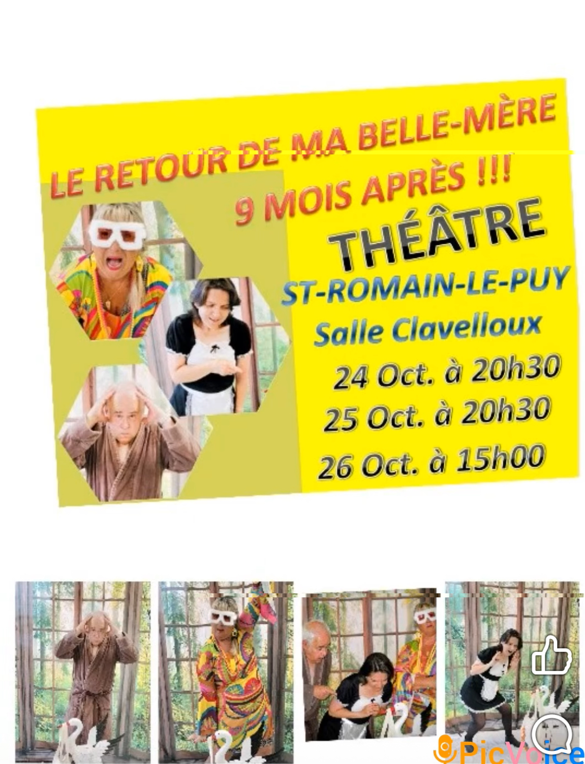 Les week-end du 24-25 et 26 octobre 2025, la compagnie de théâtre « Rire en Folie » de Saint Romain le Puy de produira sur la scène de la salle Clavelloux de Saint Romain le Puy. Il est à noter qu’un euro par entrée sera reversé à l’association Les yeux du coeur, lors de ces trois représentations qui représentent un véritable marathon pour la compagnie.